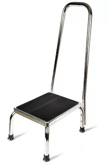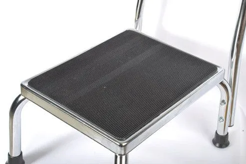 Прочная конструкция выполнена из хромированной стали, а резиновое покрытие предотвращает скольжение. В этих же целях предусмотрены насадки на ножки. Вспомогательная ступенька также оснащена съемной ручкой в качестве дополнительной надежности.