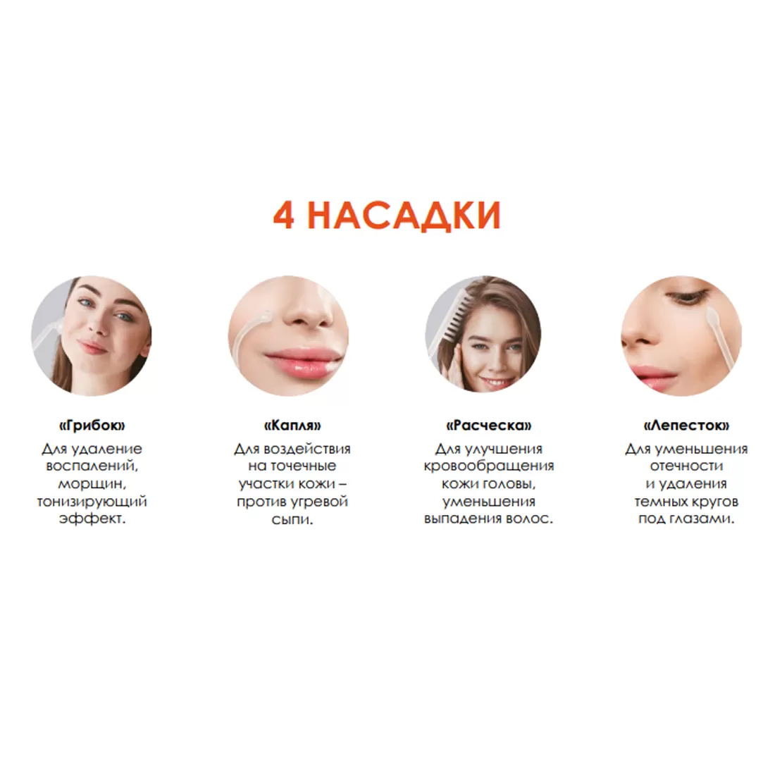 - насадки – 4 шт.: «Лепесток», «Капля», «Грибок», «Расческа»;