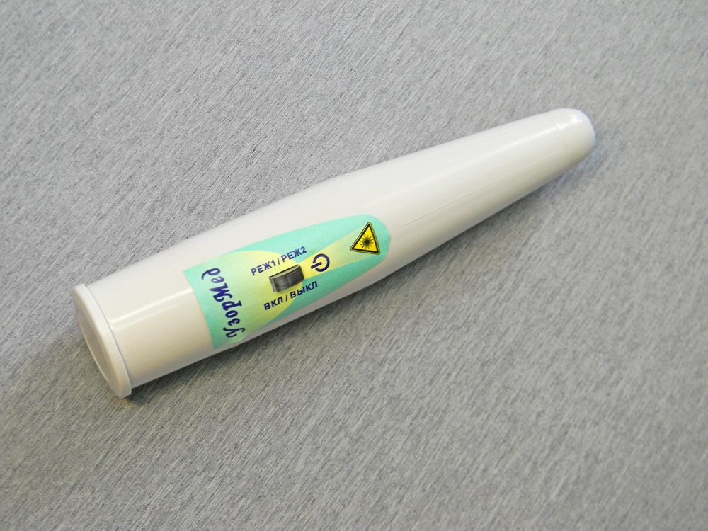 - В аппарате используется инфракрасный импульсный лазерный излучатель с импульсной мощностью 6 Вт, что обеспечивает достаточную глубину эффективного проникновения при облучении большинства внутренних органов – порядка 3,6 – 4,2 см.