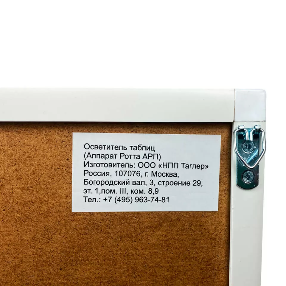 Аппарат Ротта TAGLER АРП применяется для проверки остроты зрения и подбора очков или линз в офтальмологических отделениях клиник и больниц, в поликлиниках, в оптических салонах и магазинах оптики, в павильонах диспансеризации.Характеристики