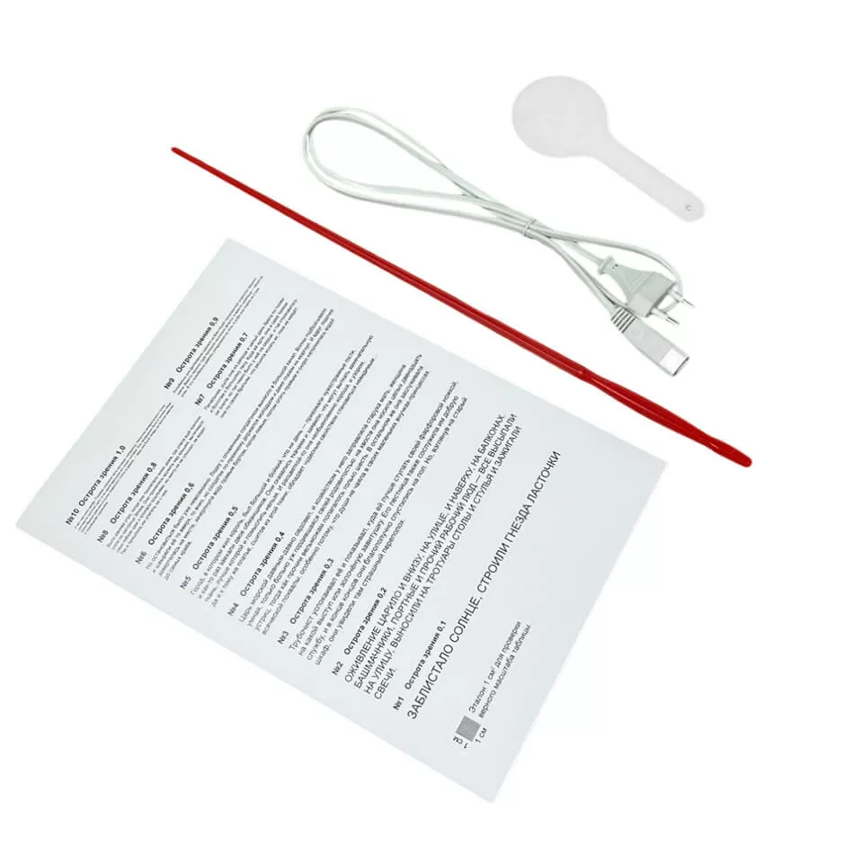 В комплект входят пять различных таблиц для проверки зрения: