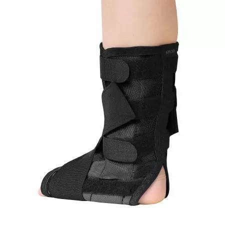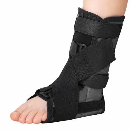 - Имеет 2 пластиковых ребра жесткости для фиксации ступни и 2 анатомические съемные пластиковые пластины, фиксирующие лодыжку по вертикали