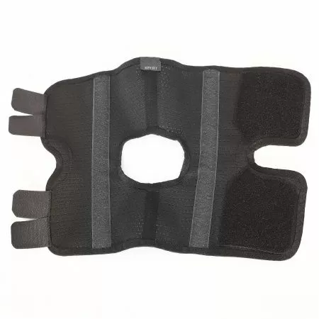 - Бандаж выполнен из перфорированного материала, имеет усиленные полукольца для коленной чашечки, обработанные мягким материалом