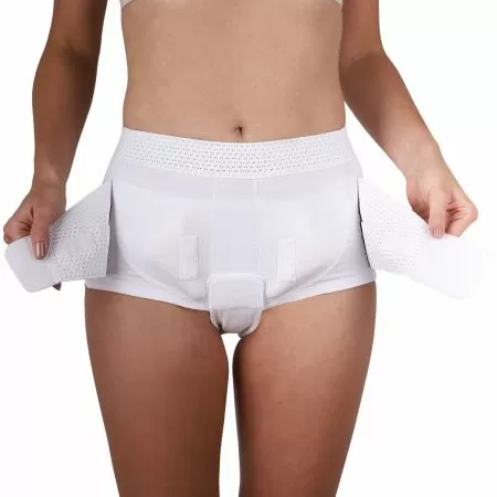 - Бандаж можно не снимать при походе в уборную - расстегивающаяся ластовица с фиксацией лентой Velcro (ластовицу можно крепить поверх стяжек)\