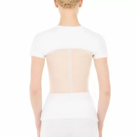 - имеет анатомическую форму, позволяющую оптимально разместить бандаж на грудной клетке женщины