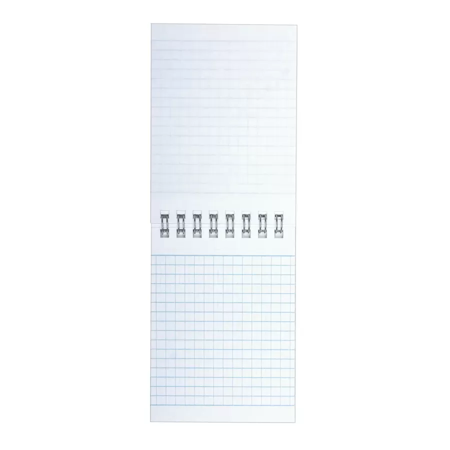 - Блокнот формата А7 на гребне содержит 40 листов с линовкой в клетку.
