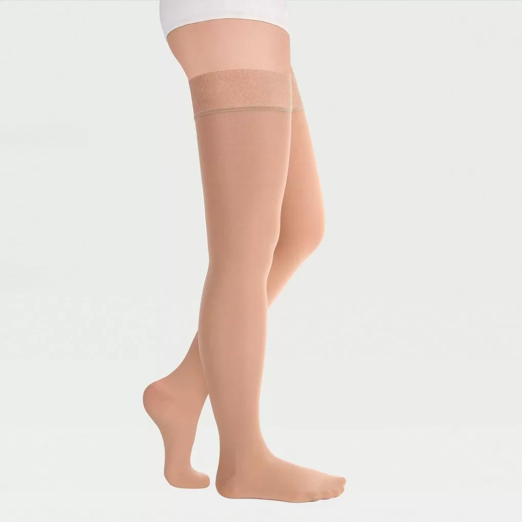 - резинка на силиконовой основе, в том числе на широкое бедро, мягко фиксирует чулок , не нарушая кровотока