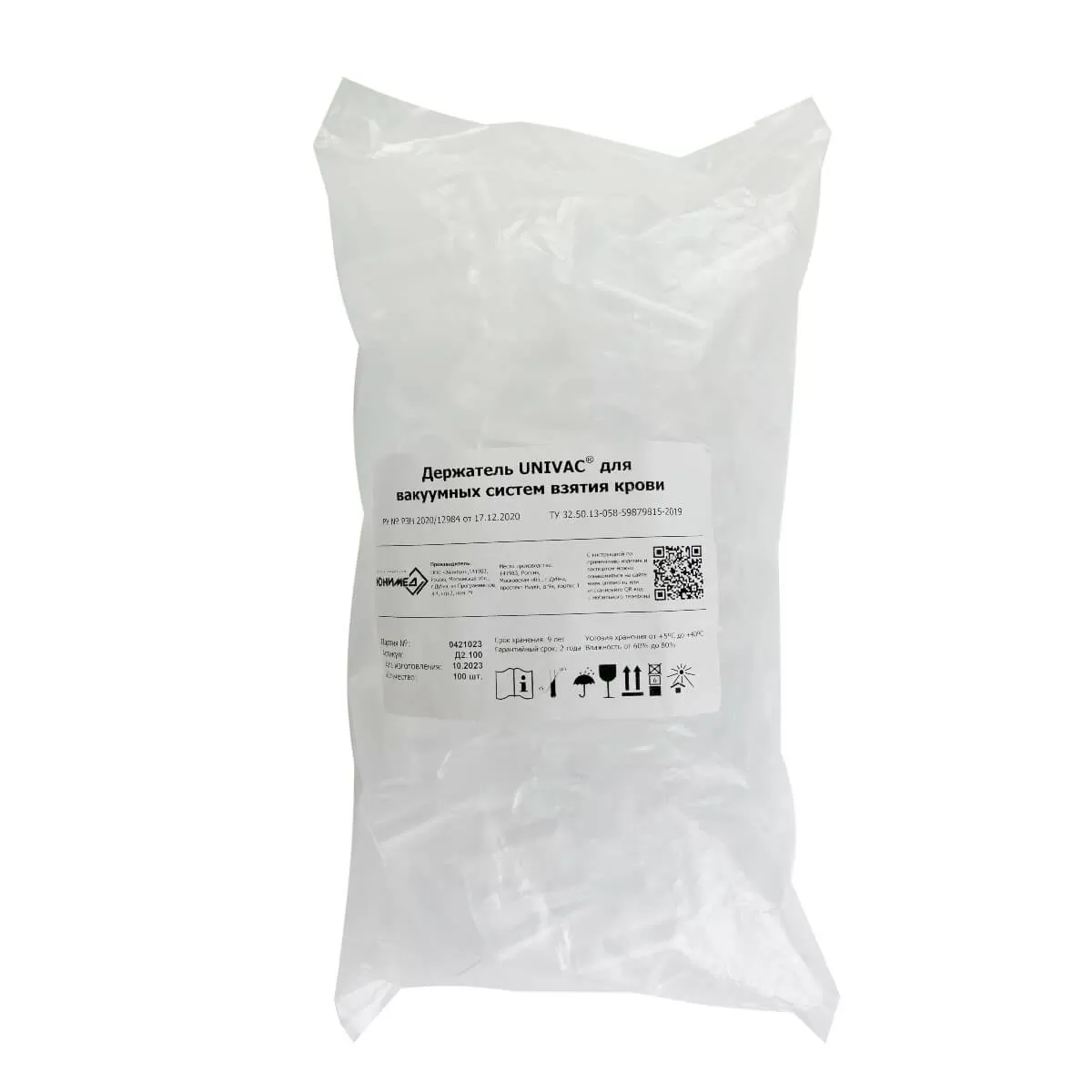 - Держатели UNIVAC® изготовлены из качественной пластмассы и могут использоваться повторно после специальной обработки, так как не имеют непосредственного контакта с кровью.