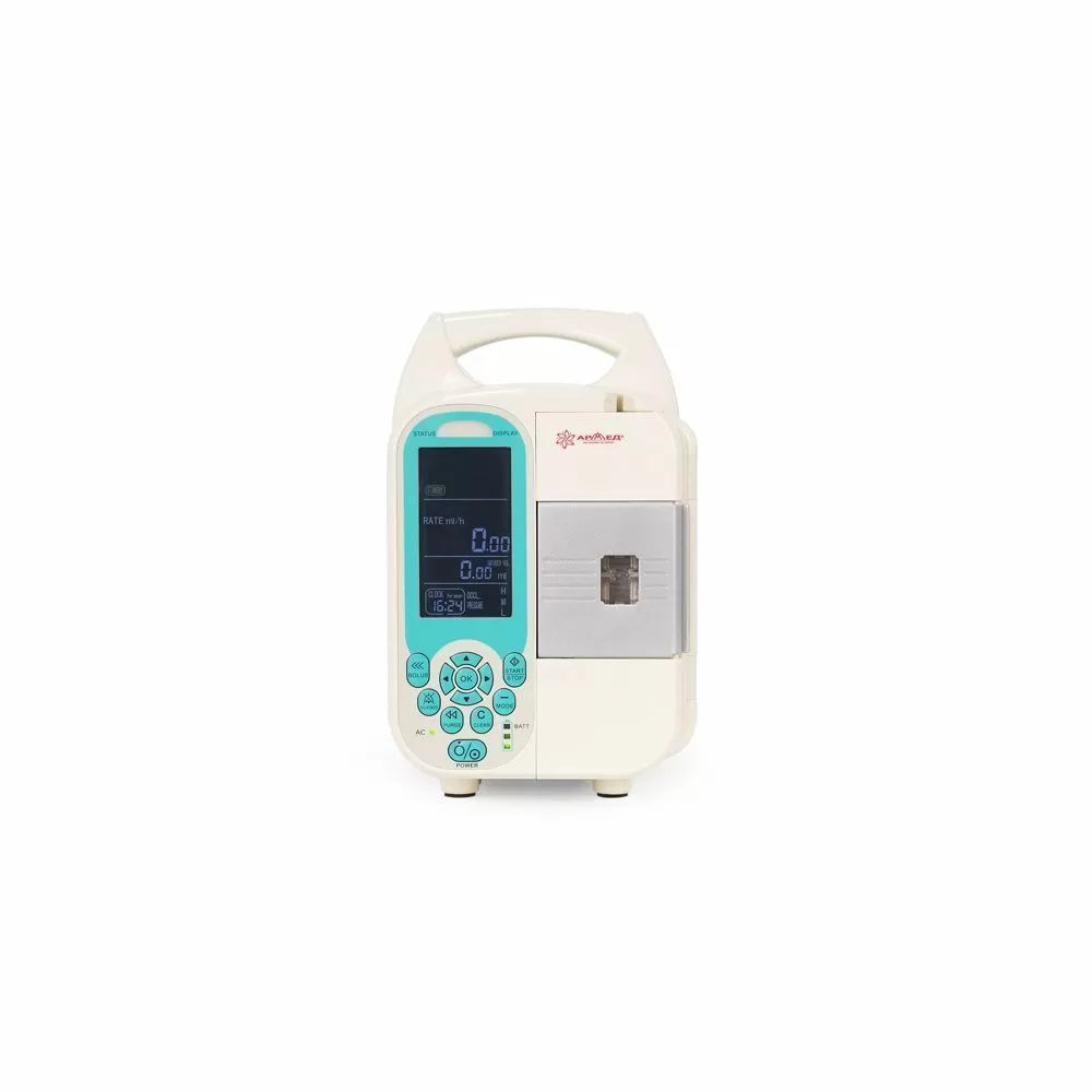 - Панель управления состоит из кнопок с высоким уровнем чувствительности и понятным обозначением. Настраивать прибор получается очень быстро. Скорость и объем подачи лекарства настраиваются вручную или автоматически в зависимости от веса пациента и необходимого времени введения препарата.