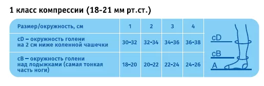 - Гольфы с серебряной нитью обладают градуированной компрессией, которая распределяется по ноге следующим образом: на лодыжке 100% и 80% к середине голени.