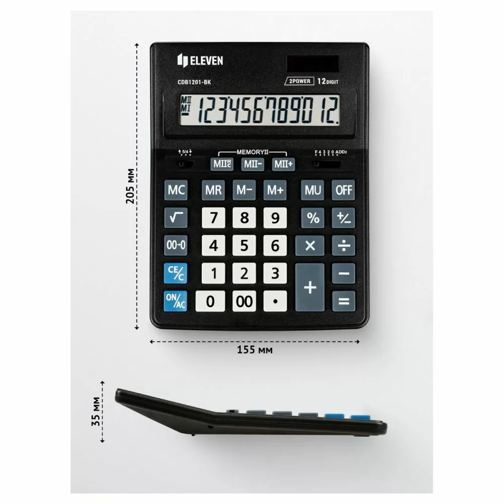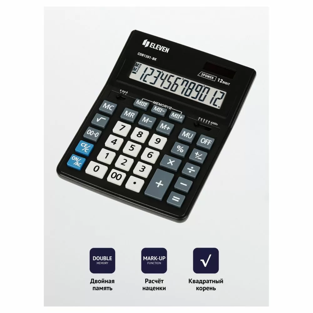 12-ти разрядный настольный калькулятор Eleven CDB1201-BK – незаменимый помощник в офисе, школе и дома. Eleven Business Line - линейка настольных калькуляторов для ежедневного использования в офисе по оптимальной цене. Эргономичная форма, крупные клавиши, устойчивые прорезиненные ножки позволят работать эффективнее.