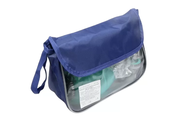 - В комплект входят: мешки вентиляционный 500 мл и дополнительный 600 мл, клапан пациента и выпускной клапан, маски дыхательные № 2 и 3, кислородная трубка, сумка для хранения