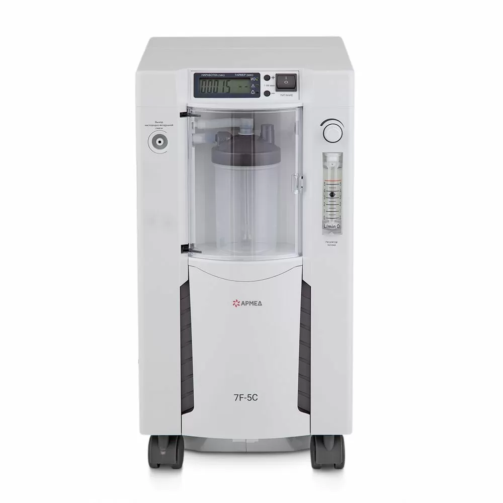 - Модель концентратора производит до 5 л воздушно-кислородной смеси в минуту. Концентратор Армед 7F-5C – прекрасный выбор для использования дома, в медучреждениях, кислородных барах, спортзалах, косметологических кабинетах. Эта модель станет любимым устройством детей, обожающих кислородные коктейли.