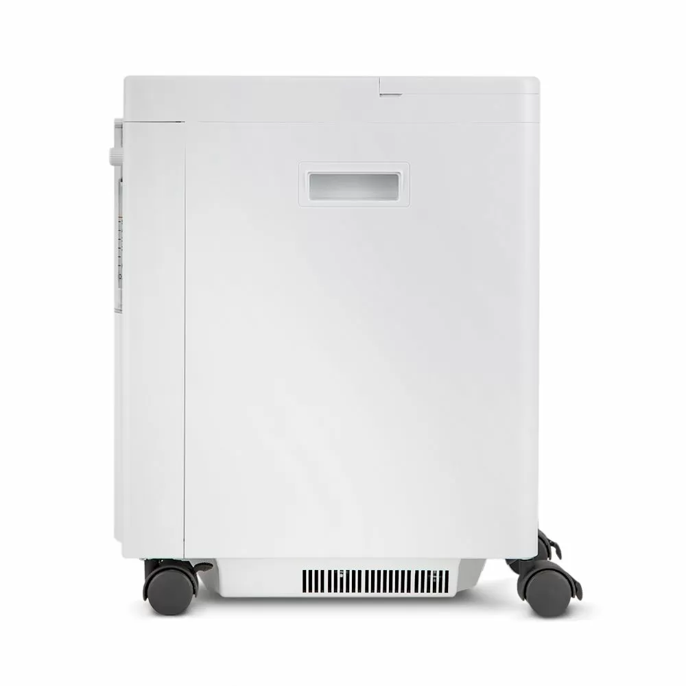 - Корпус концентратора кислорода выполнен из надежного ударопрочного пластика и снабжен удобными боковыми ручками, а также колесными опорами для легкого перемещения по дому.