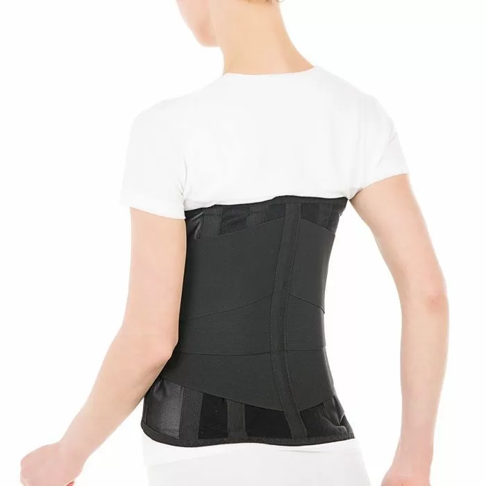 - эластичный материал корсета, 4 моделируемые ребра жесткости и тройная дополнительная стяжка позволяют создать регулируемое давление, что посредством разгрузки мышц поясницы и сжатия брюшной полости приводит к купированию болевого синдрома
