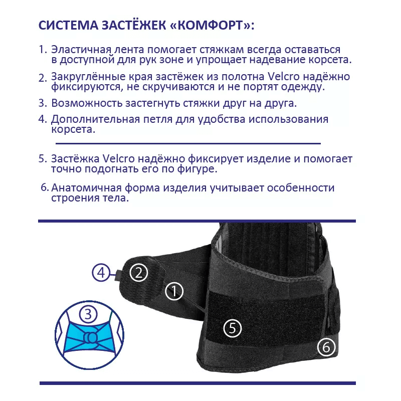 - Тройная эластичная стяжка с системой застёжек «Комфорт»