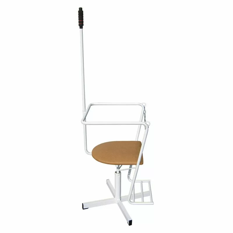 - В задней части стула установлена труба с ручкой для вращения пациента