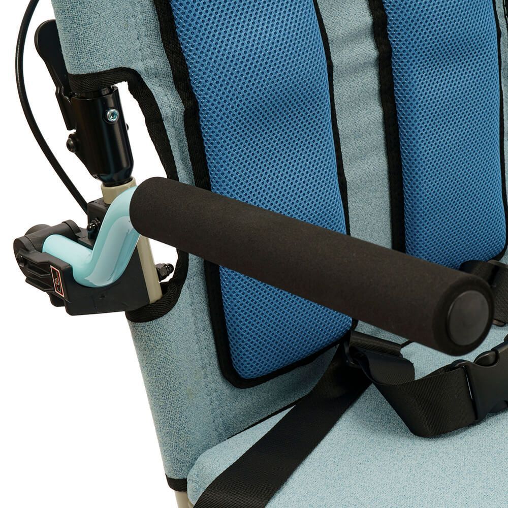 - Практичность: откидные подлокотники и подножки, объединенная тормозная система, складная спинка.