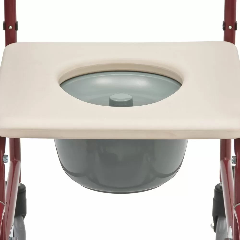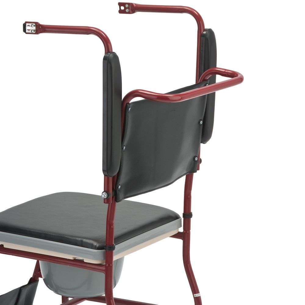 Удобное сиденье и спинка из кожзама, легко устанавливать над унитазом; Откидные подлокотники |