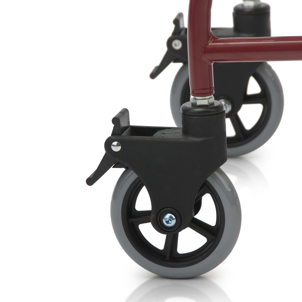 - Цельнолитые колеса не требуют специального обслуживания, устойчивы к проколам и долговечны. Задние колеса оборудованы индивидуальными тормозами для фиксации положения кресла.