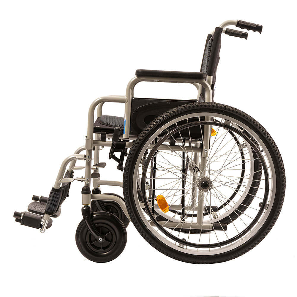 - Быстросъемные задние колеса позволяют за секунды снять колеса для компактного размещения в багажнике автомобиля или хранения в малогабаритном пространстве.