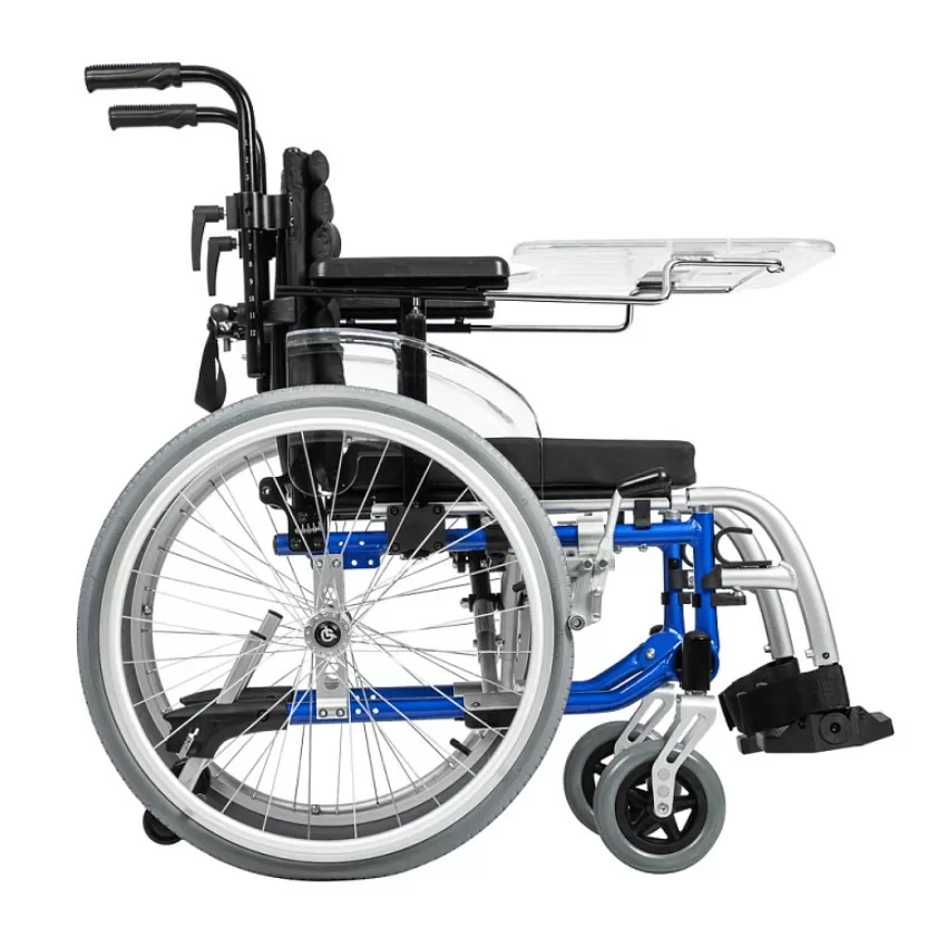 Регулируемые элементы, такие как сиденье, подлокотники и подножки, вместе с прочной рамой, делают эту коляску идеальной для детей и подростков, ростом до 120 см и весом до 130 кг. Съемный столик обеспечивает поддержку верхней части тела и является идеальным местом для приема пищи.