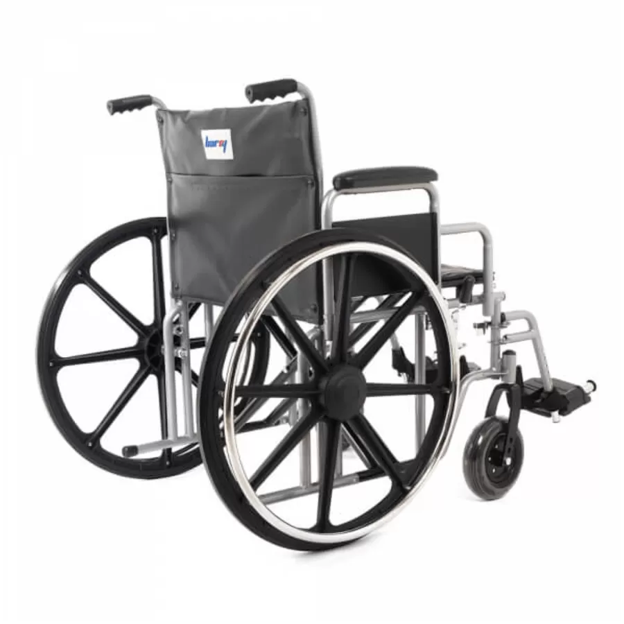Ширина сиденья представлена в двух типоразмерах: 56 см и 61 см. Широкие передние колеса и литые шины приводных колес обеспечивают простоту эксплуатации и ухода. Форма подлокотников позволяет подъехать к столу, а возможность снимания без инструментов облегчает процесс пересаживания. Складная конструкция и съемные подножки обеспечивают компактность для транспортировки и хранения.