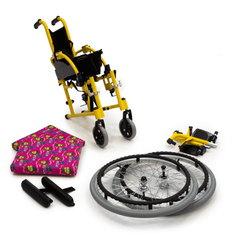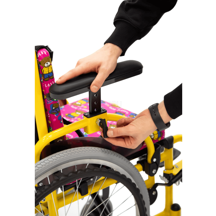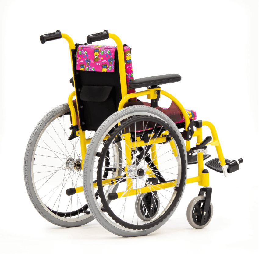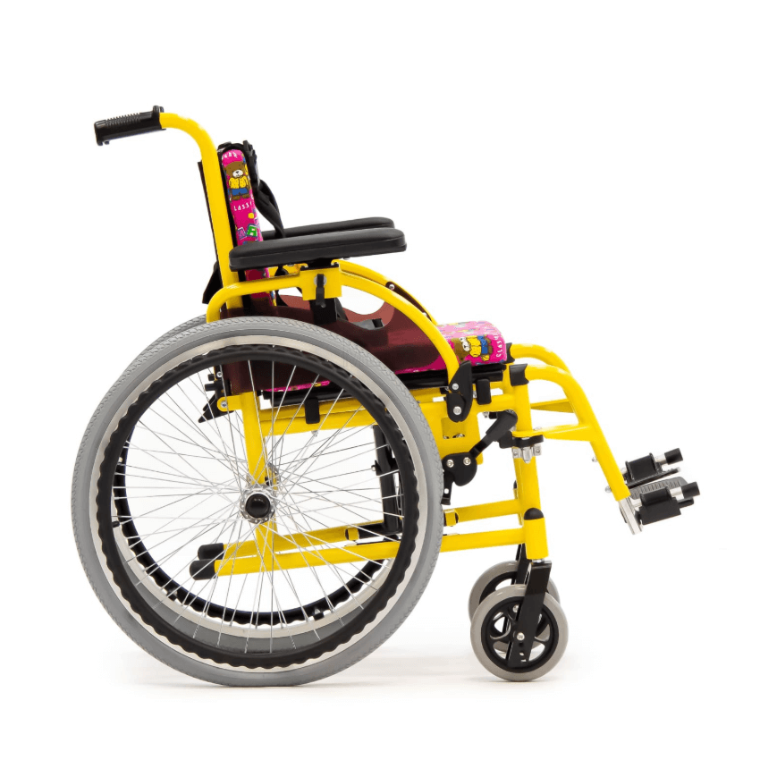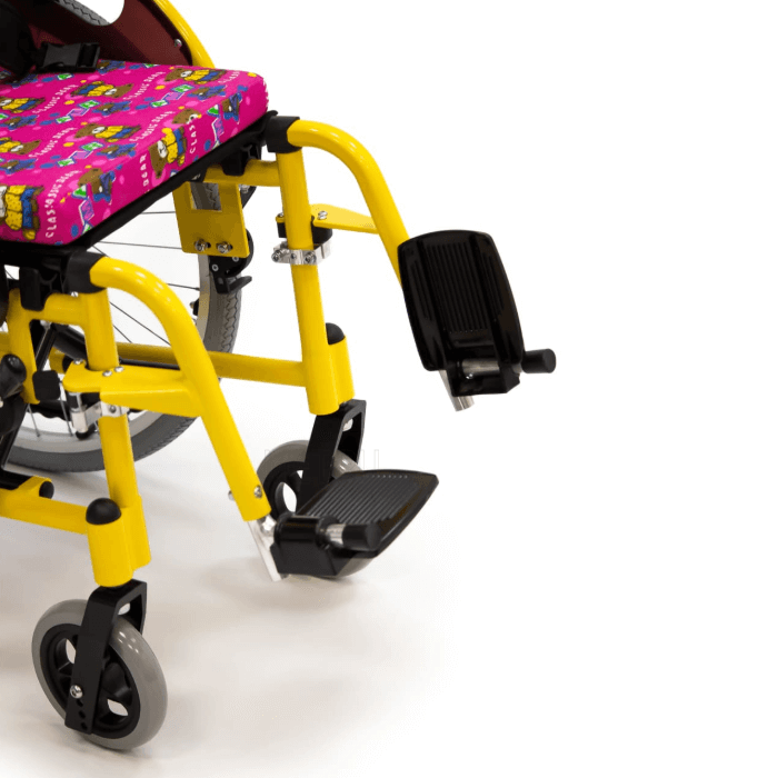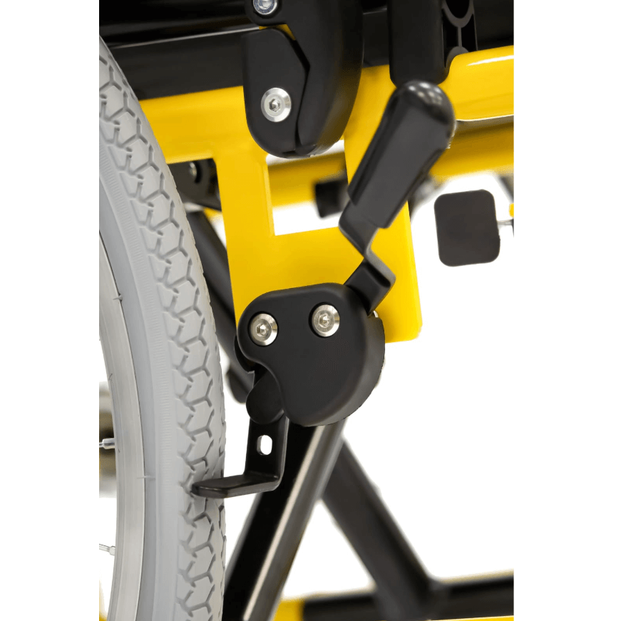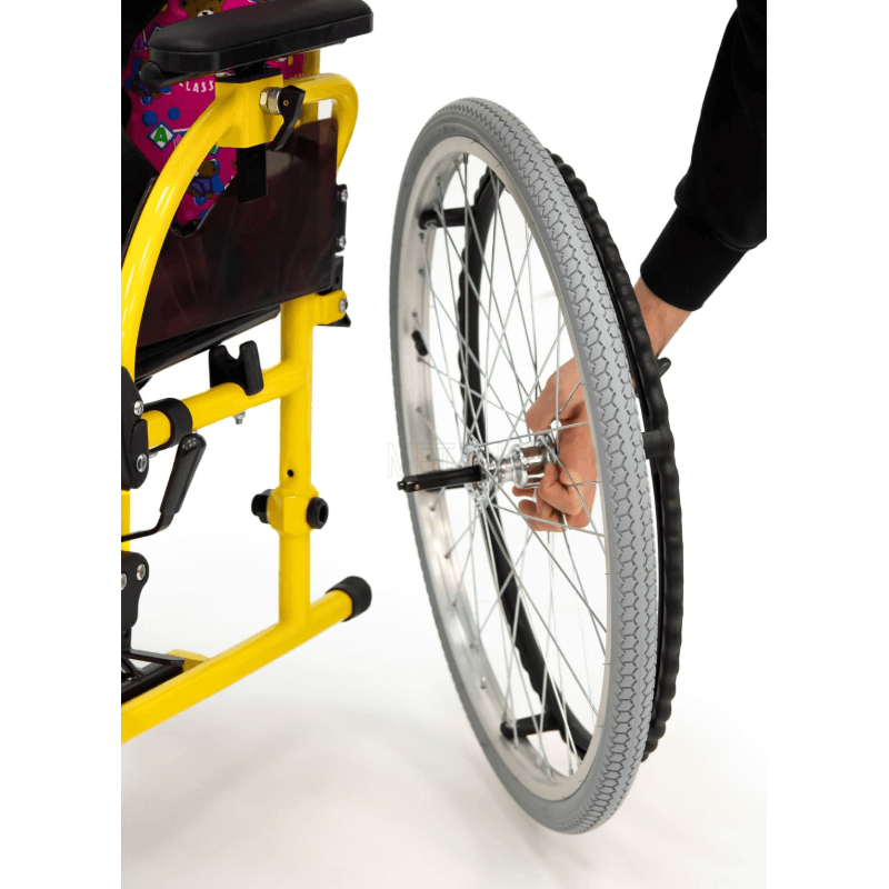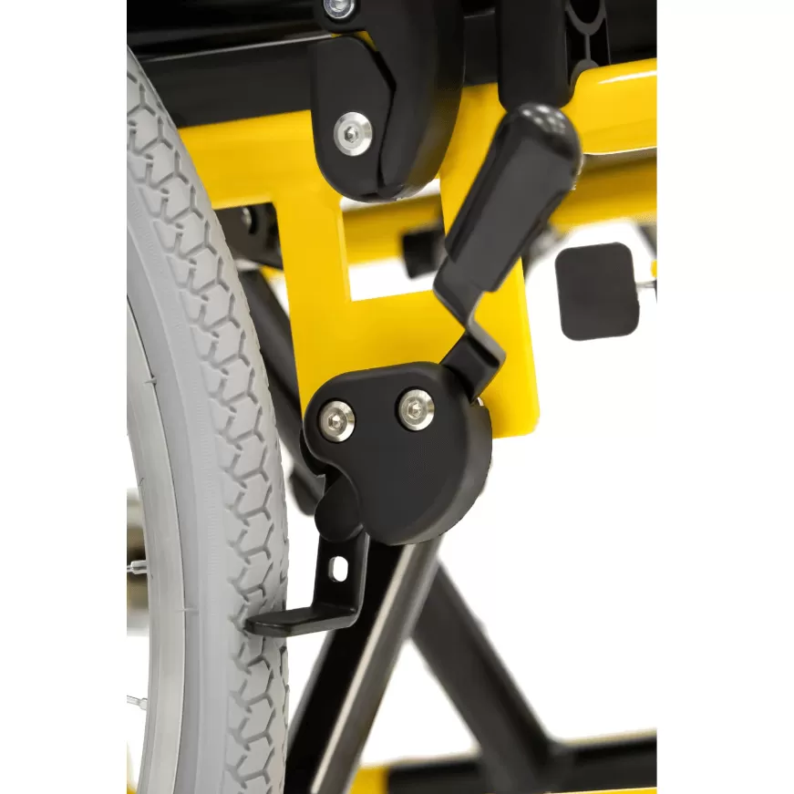 Задние колеса являются пневматическими, а передние литые. Во время остановки коляска надежно фиксируется боковыми стояночными тормозами.