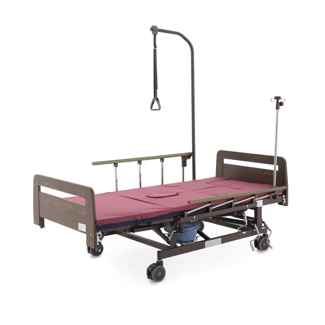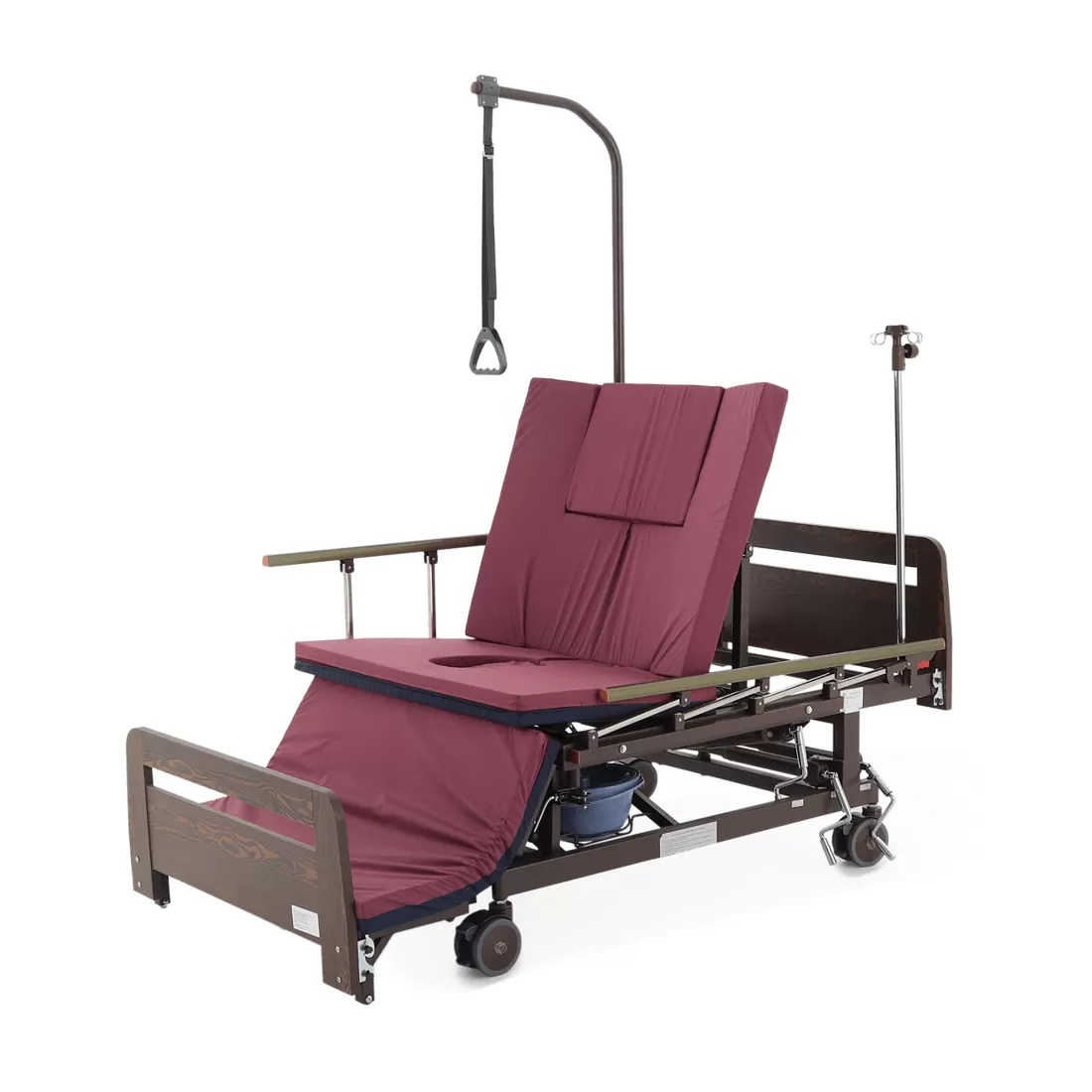 - туалетное устройство — медицинская кровать с туалетом позволяет пациенту избежать лишних движений при справлении естественных надобностей, что очень важно при тяжелых травмах и заболеваниях.