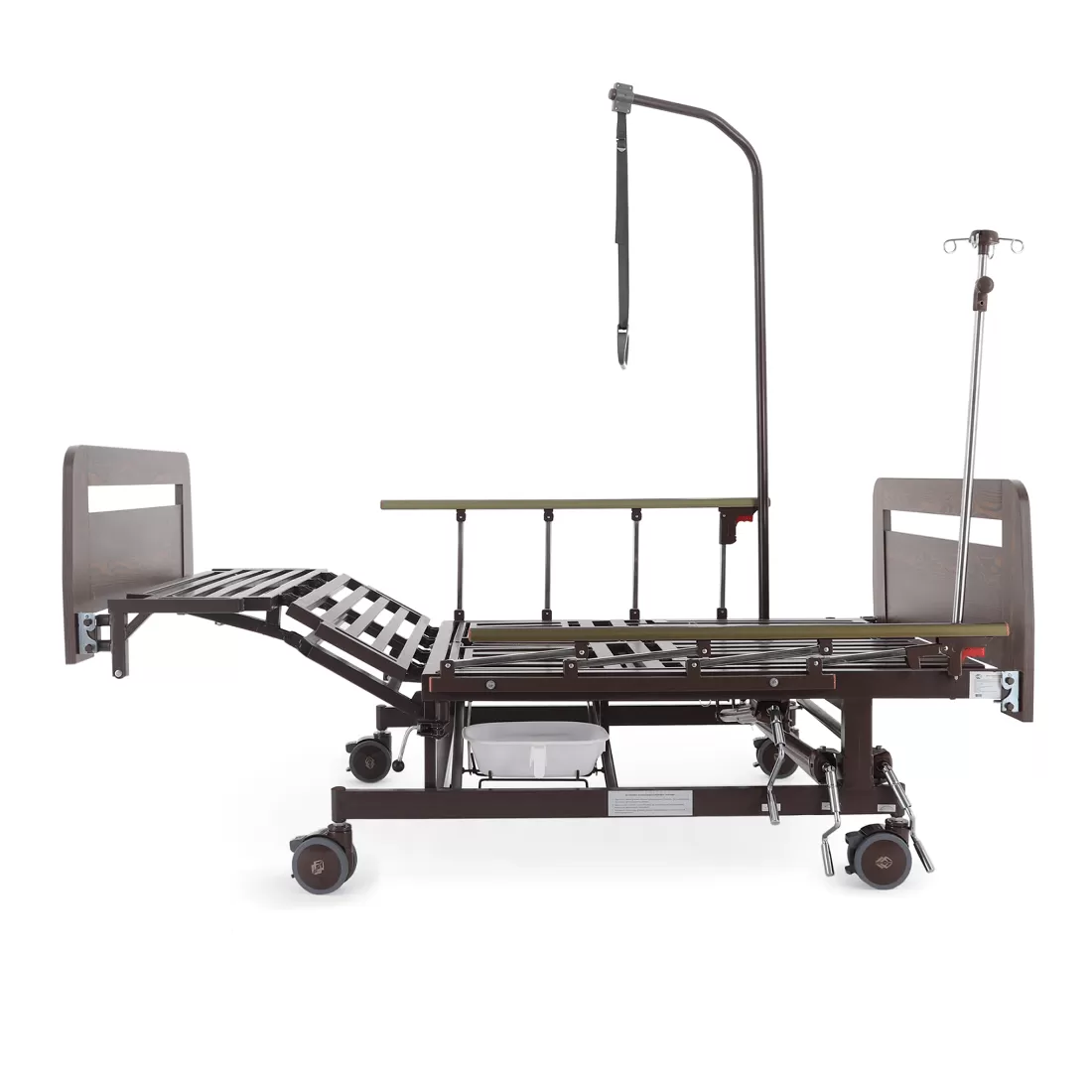 - туалетное устройство — медицинская кровать с туалетом позволяет пациенту избежать лишних движений при справлении естественных надобностей, что очень важно при тяжелых травмах и заболеваниях.