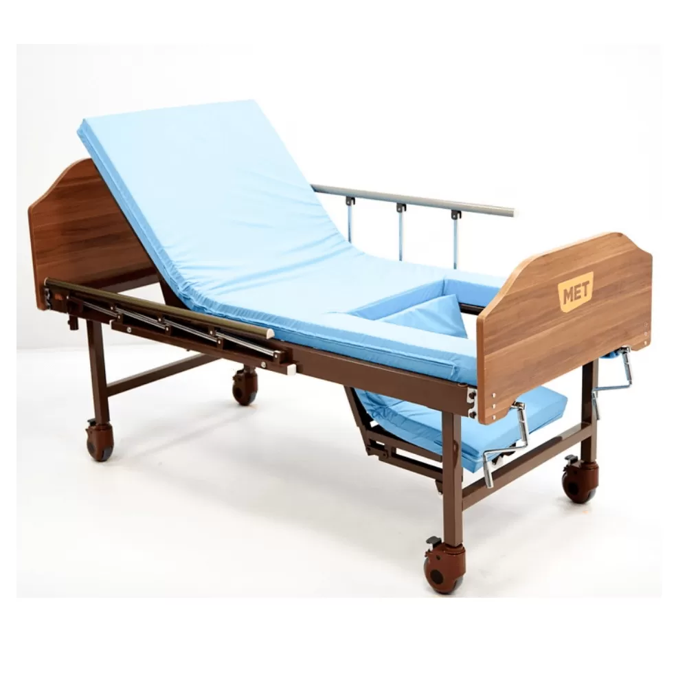 Опускающаяся ножная секция позволяет кровати занимать терапевтическое положение "кардиокресло", показанное при лечении большинства кардио-заболеваний, а полноценное сидячее положение, достижимое с помощью такой конструкции ложа делает бодрствование больного максимально удобным и полноценным.