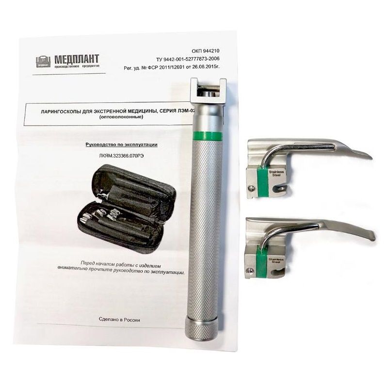 Ларингоскоп для экстренной медицины серии ЛЭМ-02/Л (лампочный) предназначен для оральной интубации трахеи при проведении реанимационных мероприятий, ИВЛ и общей анестезии.Характеристики