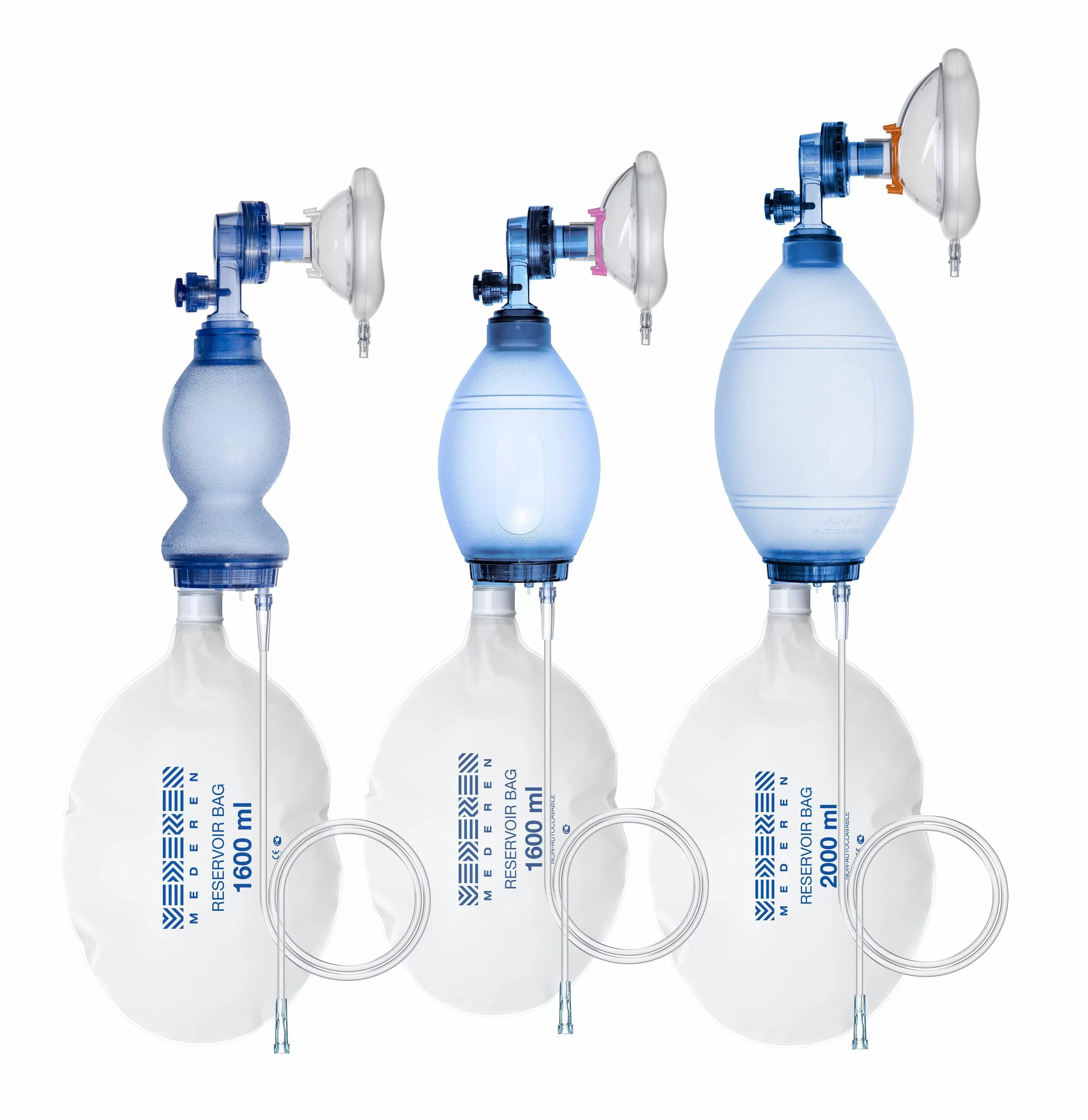 - В состав комплекта исходно входит кислородная магистраль из ПВХ длиной 2 м, устойчивая к перегибам и одноразовый резервуарный мешок, изготовленный из ЭВА/ПП, объемом не более 1600 мл (педиатрический) и 2000 мл (взрослый).
