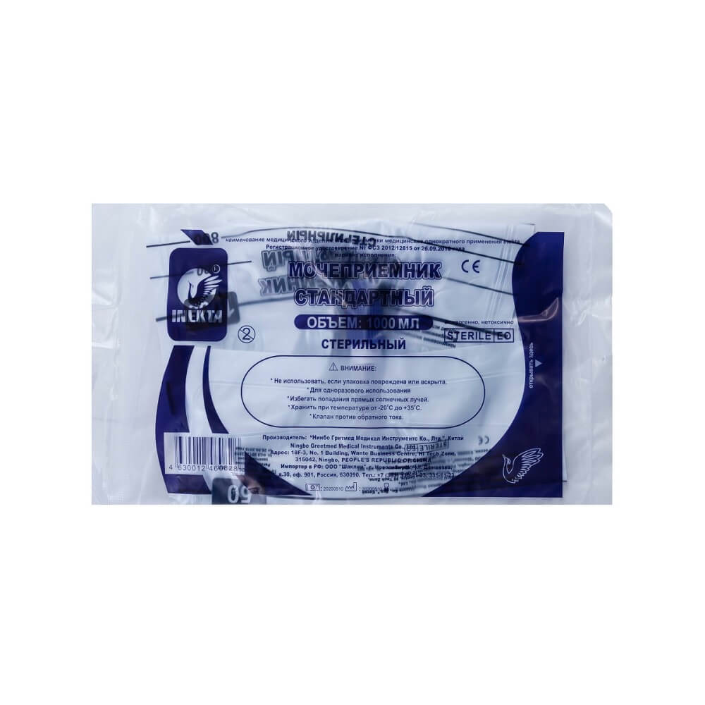 Мочеприемник стандартный прикроватный стерильный 1 литр.