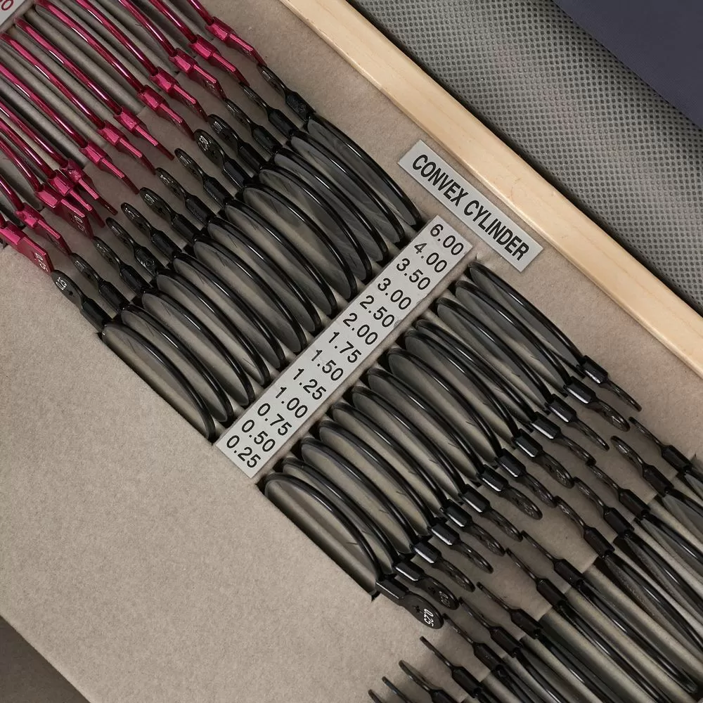 - Вогнутые (-) и выпуклые (+) цилиндрические линзы в диапазоне от 0,25 до 6,00 диоптрий предназначены для коррекции и исследования астигматизма.
