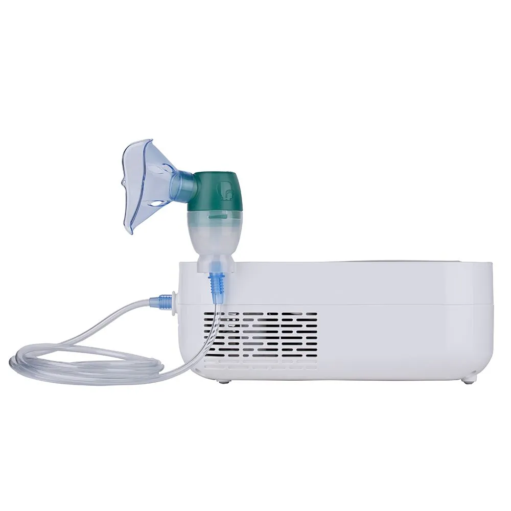 Компрессор, небулайзерная камера, 2 крышки небулайзерной камеры, назальный аспиратор, маска для взрослых, маска для детей, загубник, воздуховодная трубка (150 см), руководство по эксплуатации, гарантийный талон
