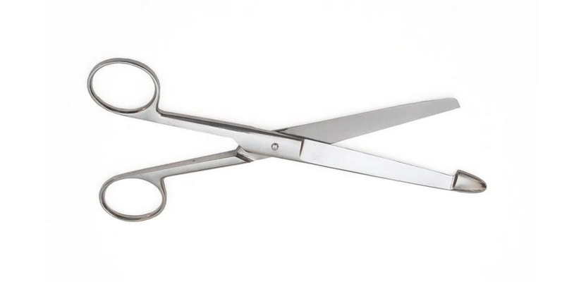 Ножницы для продольного рассечения кишечника при вскрытии трупа. Бранша ножниц, вводимая в просвет кишечника, удлинена и заканчивается овальным утолщением.