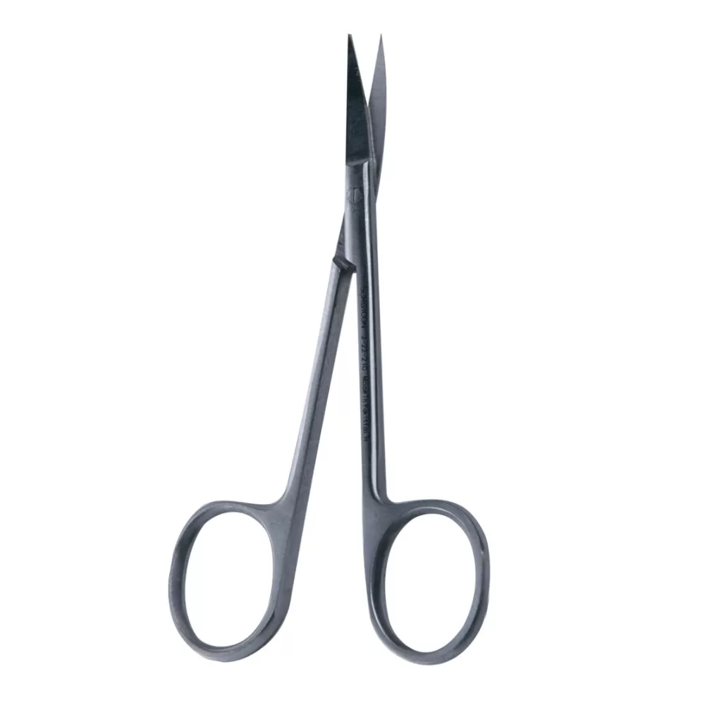 Ножницы остроконечные, вертикально-изогнутые - медицинский многоразовый инструмент, применяется для рассечения тканей и перевязочных материалов при хирургических операциях, в перевязочных и диагностических целях.- Длина - 100 мм