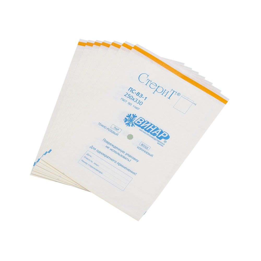 Пакеты бумажные самоклеящиеся для паровой и воздушной стерилизации СтериТ ПС-ВЗ производства ООО НПФ ВИНАР легко проницаемы для соответствующих стерилизующих агентов, в закрытом виде непроницаемы для микроорганизмов, сохраняют целостность после стерилизации соответствующим методом.