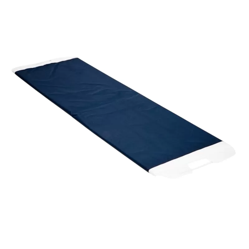Скользящая простынь обеспечивает возможность без посторонних усилий и комкания постельного белья переместить самого грузного пациента с кровати на носилки или каталку. Конструкция перекладывателя представляет из себя "муфту" со скользящим полиэстером внутри и мягким, приятным к телу материалом снаружи.
