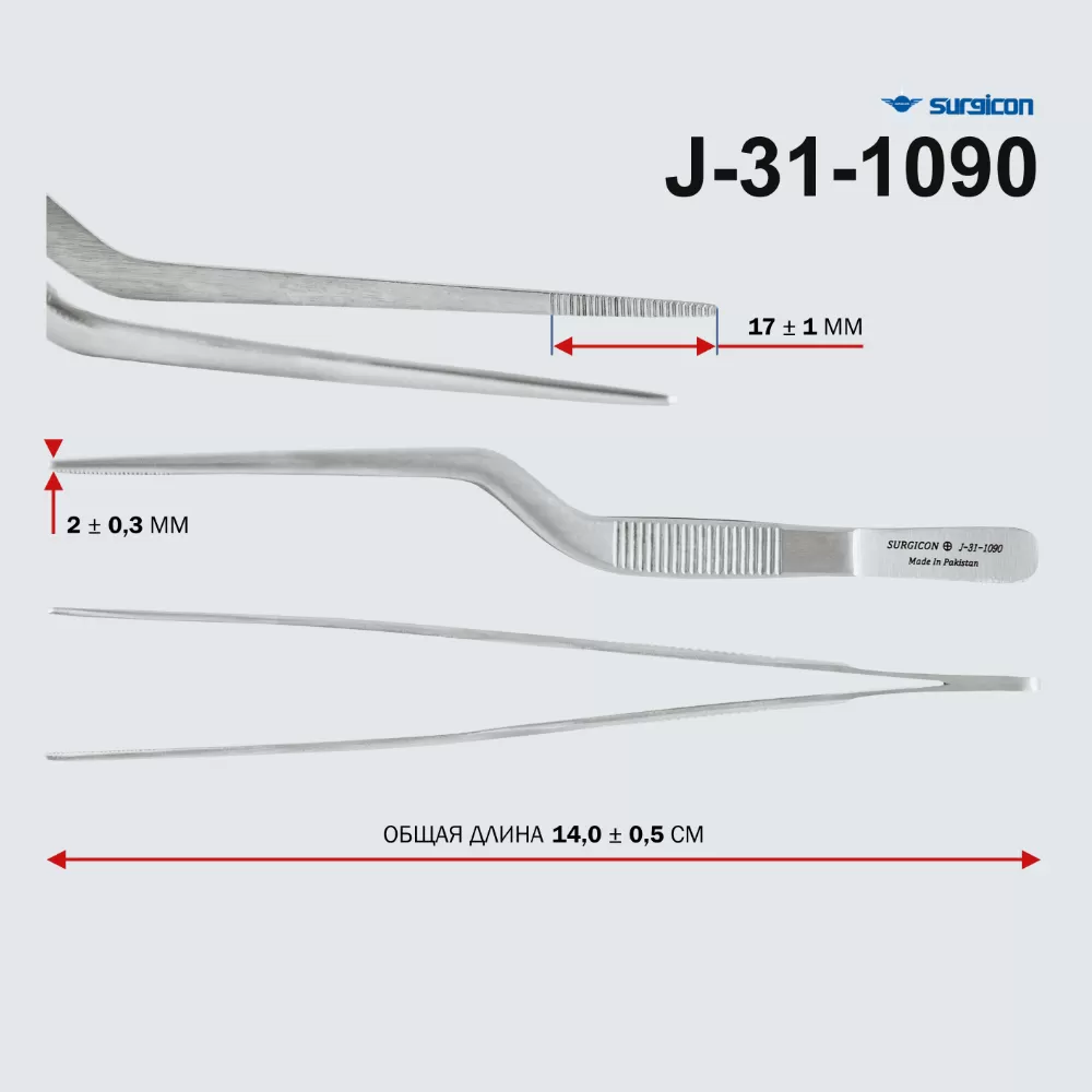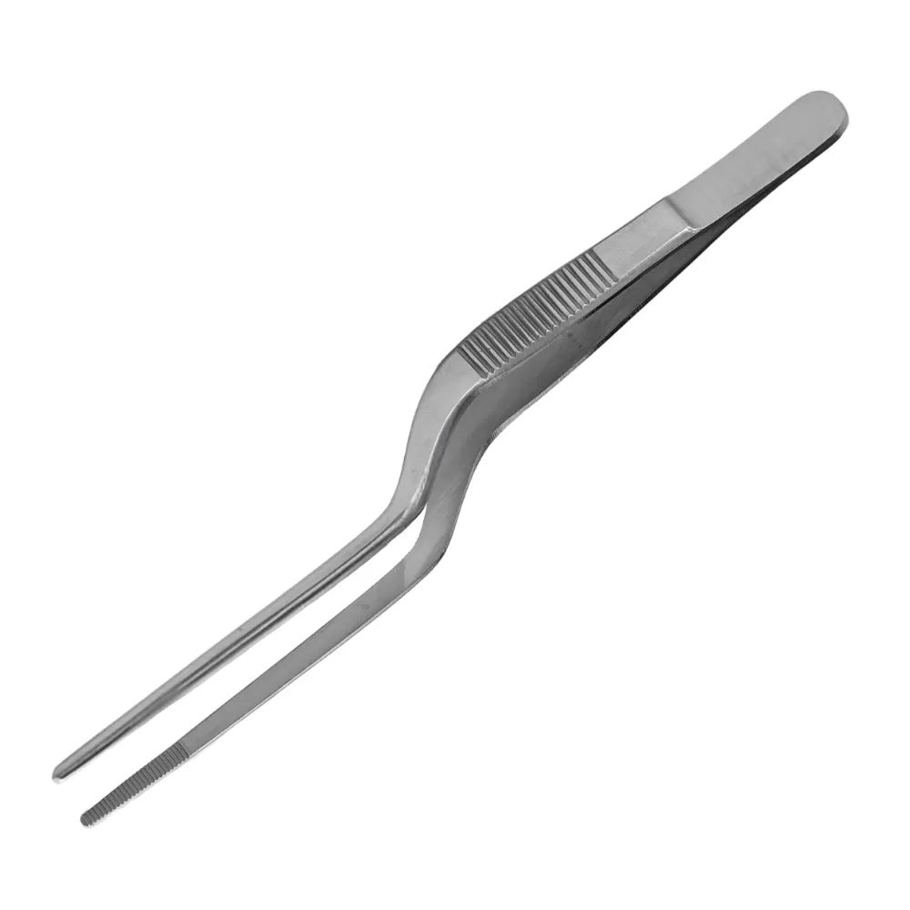 Пинцет ушной штыковидный анатомический - медицинский многоразовый инструмент отоларинголога для манипуляций в наружном слуховом проходе. Бранши пинцета имеют двойной изгиб по ребру в виде штыка для улучшения обзора. Рабочая часть имеет плоские насечки.- Общая длина - 140 мм