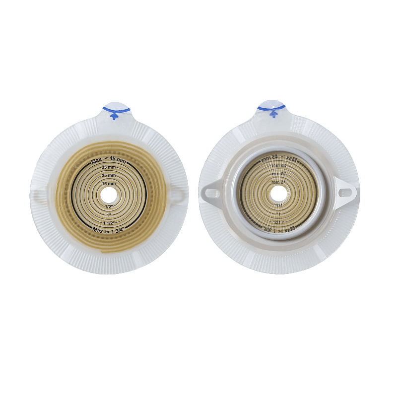 Двухкомпонентные калоприемники Alterna® состоят из клеевых (адгезивных) пластин спиралевидной структуры и стомных мешков.