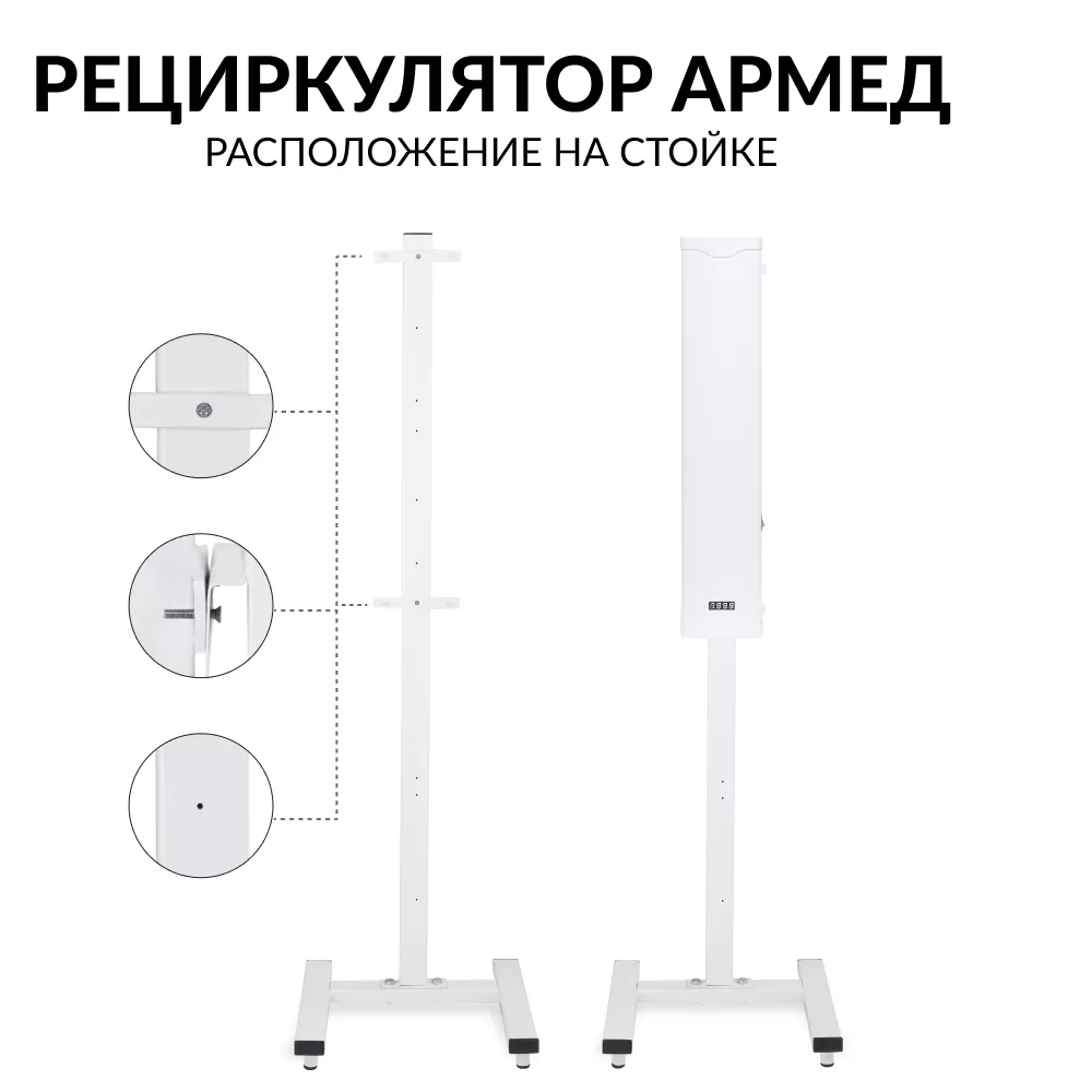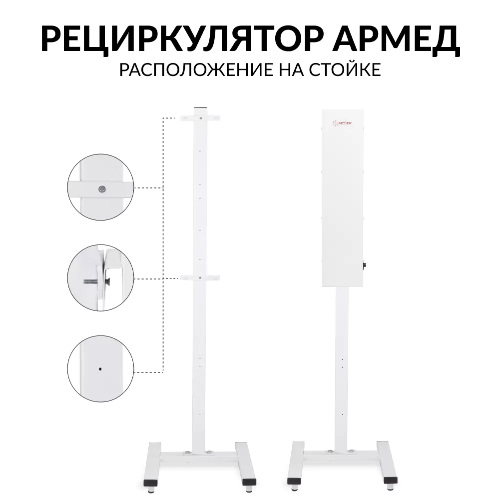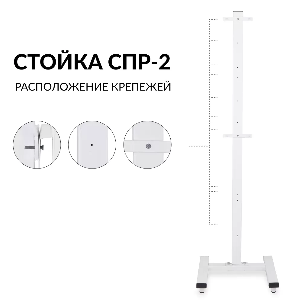 - Оснащение - дополнительно основание стойки оснащено 2 стационарными опорами для большей устойчивость
