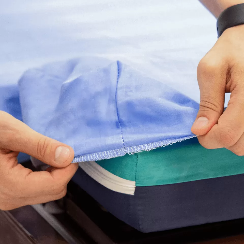 - Натяжная четырехсоставная простыня для медицинской кровати с опусканием ног вниз MET EVA