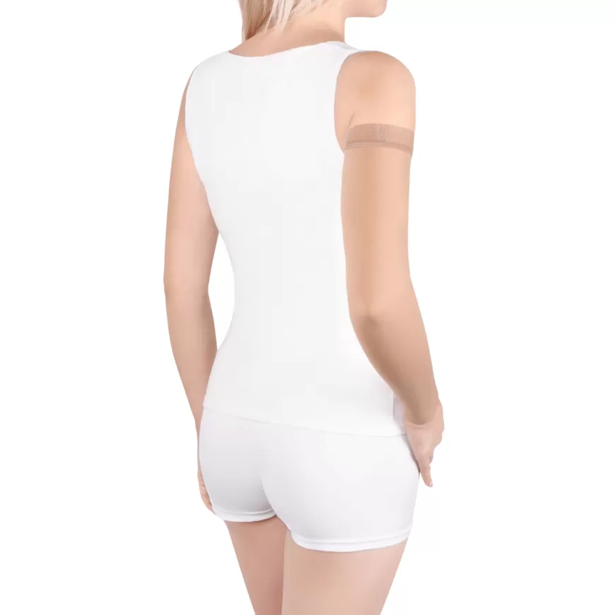 - Опустите батлер и аккуратно расправьте изделие по руке. Резинка должна располагаться на 5-7 см ниже подмышечной впадины.