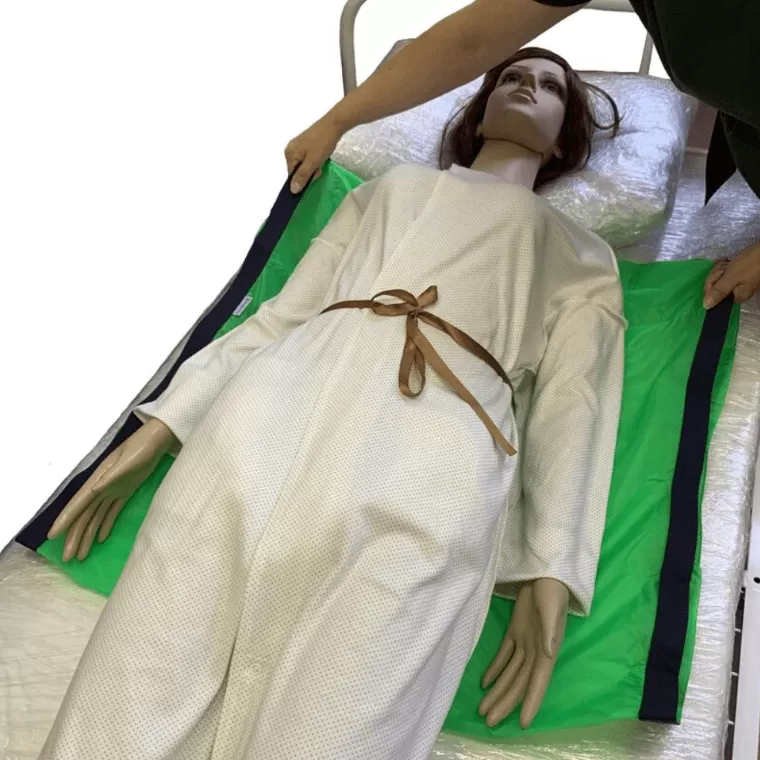 Скользящий рукав для перемещения больных значительно упрощает ежедневный уход за больным.Благодаря небольшому размеру 70×70 см и конструкции в виде трубы его быстро и просто разместить под пациентом и сместить на небольшое расстояние или подтянуть больного к изголовью кровати при «сползании» вниз.