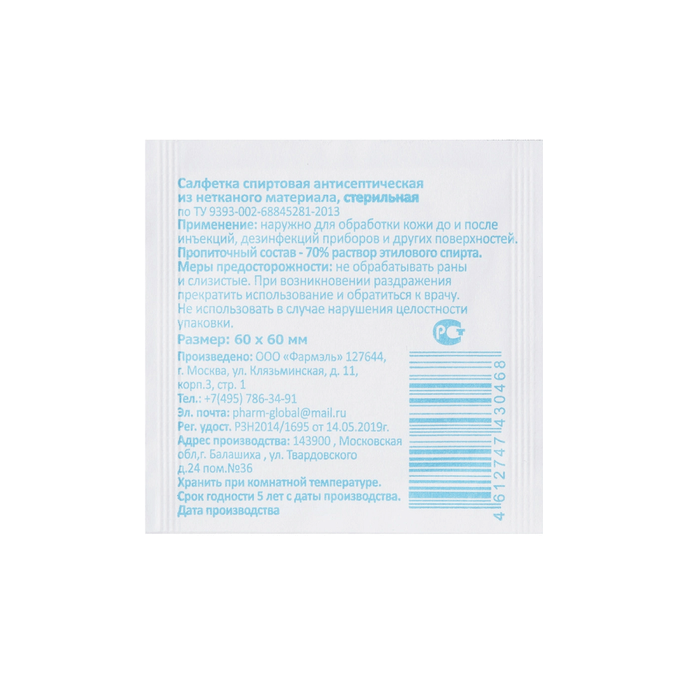 - Салфетка антисептическая для инъекций Фармэль спиртовая 60×60 мм (300 штук в упаковке)