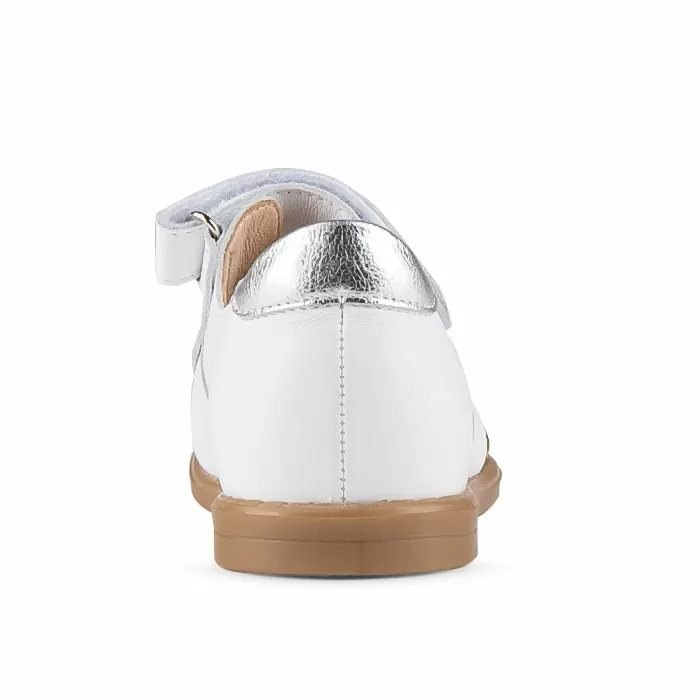 - Универсальный белый цвет с серебряной отделкой будет прекрасно сочетаться с большинством цветов одежды для девочек
