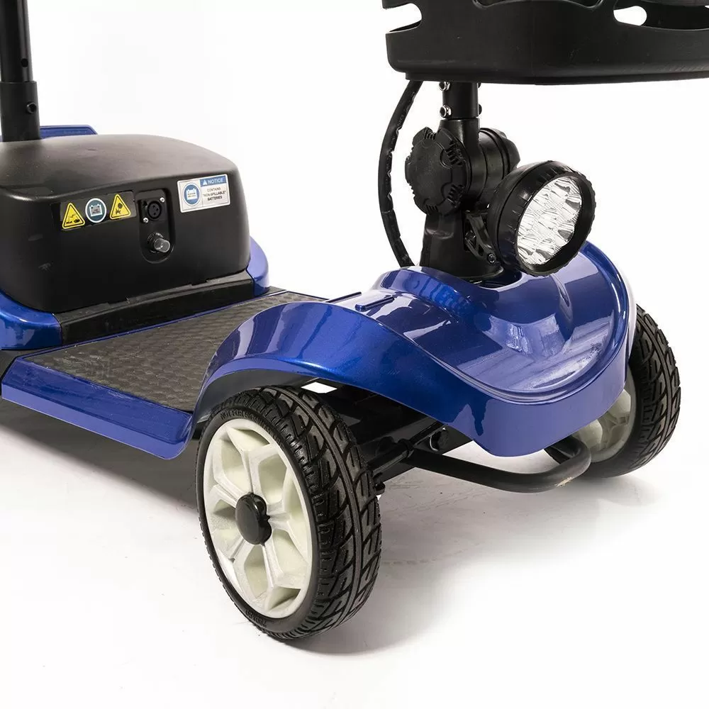 Оснащен удобным рулем, на котором располагается панель управления, и поворотным сиденьем с откидывающимися подлокотниками. Это позволяет сделать посадку на кресло скутера комфортной даже для пользователей, которые имеют проблемы с опорно-двигательным аппаратом.