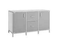 - Включает в себя 2 отделения с полкой, закрытые дверками, и отделение с 2-мя выдвижными ящиками